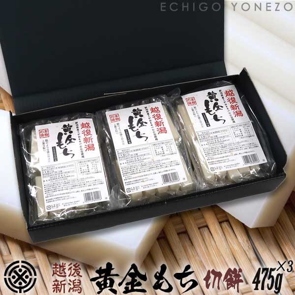 【新潟 切り餅】 越後新潟 黄金もち ギフトセット 475g×3パック(1パック×10枚入) 新潟県産 黄金もち米 100%使用 gift kome glutinous rice niigata koganemochi made in japan