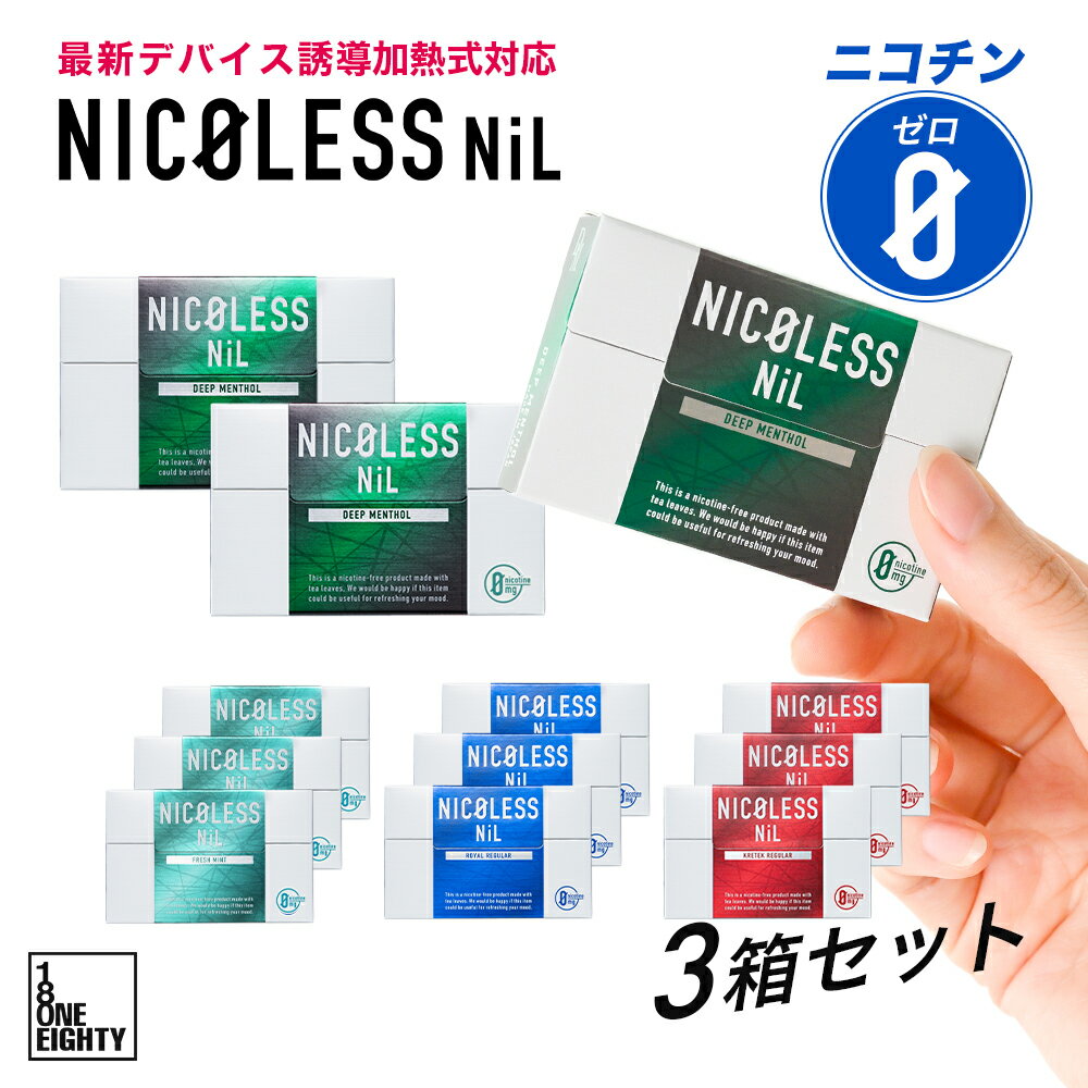NICOLESS NiL ニコレス ニル 3箱セット (1箱20本入り×3) ニコチンフリー 誘導加熱式 アイコスイルマ イルマ対応 全4種 スティック ニコチンゼロ 禁煙グッズ 加熱式 メンソール 禁煙サポート ニコチン 0
