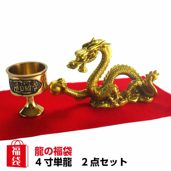 \25日迄!10%OFFクーポン/ 龍の置物 風水 龍 置物 金 風水火山 風水グッズ 玄関 五本爪 金龍 宝珠 龍置物 水杯 水盃 開運祈願 金運祈願 干支の辰置物 干支の置物 竜 ラッキーバッグ 福袋 2025 【風水龍の置物福袋 6,000円セット 4寸単龍】【RSL】
