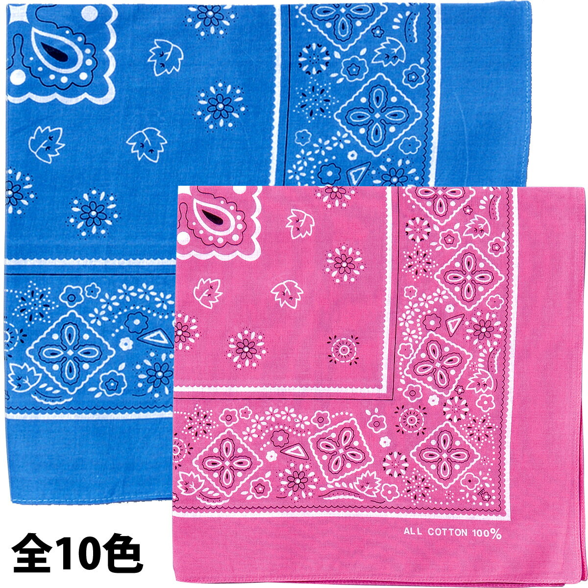 【即納】ペイズリー柄バンダナ/ハンカチ/ダンス衣装/小物/小道具/首元/手首/白/黄/赤/緑/青/紫/黒/MC83119 レディース/ジュニア/キッズ/メンズ 綿100%/正方形 ホワイト/イエロー/オレンジ/レッド/グリーン/ブルー/パープル/ブラック 約55cm角 [M便 1/10]