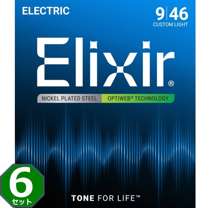 6セット Elixir OPTIWEB #19027 Custom Light 009-046 エリクサー コーティング弦 エレキギター弦