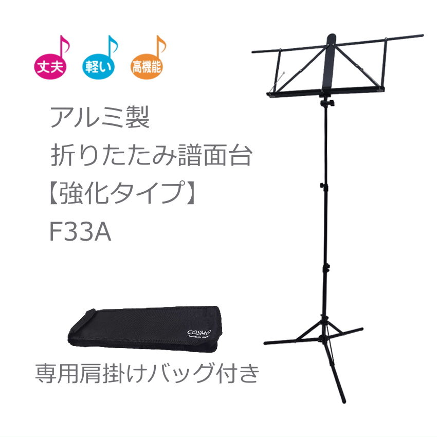 アルミ譜面台 コスモM・Sテクノ 軽量 軽い コンパクト 持ち運びが楽 アルミ製折りたたみ譜面台 強化タイプ 専用肩掛けバッグ付き F33A F30Fの改良強化版 持ち運び楽々 頑丈 長持ち