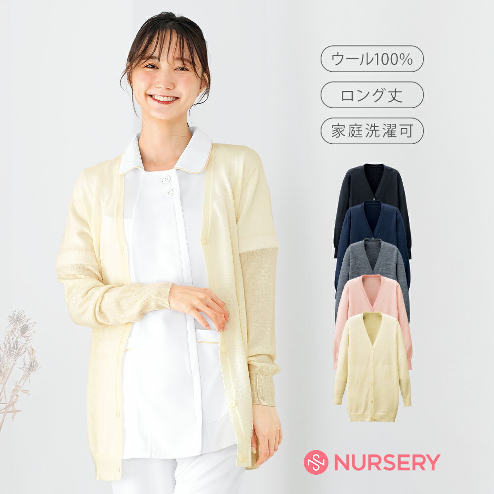 自宅で洗える!メリノウールカーディガン(ロング丈)【レディース 秋冬 ナース 白衣 医療 看護師 介護 事務 洗える スクール 制服 オフィス ユニフォーム ナースリー 人気 おすすめ】7042