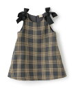 BeBe Petits Pois Vert 【店舗限定】チェック柄リボンジャンパースカート(95~150cm) ベベ オンライン ストア ワンピース・ドレス ジャンパースカート ベージュ ブルー【送料無料】
