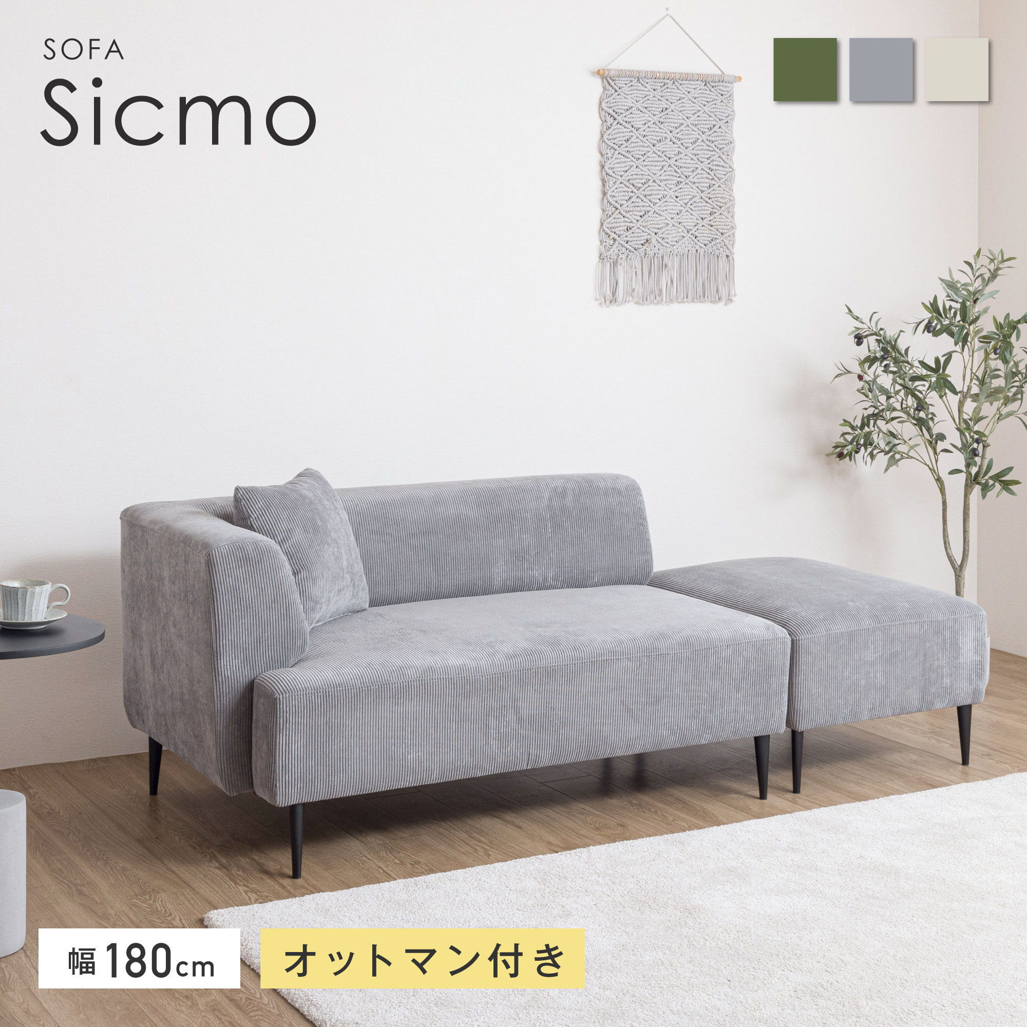 ソファ ソファー 2人掛け 2人用 1人掛け ローソファ フロアソファ 125cm幅 コーデュロイ生地 オットマン付 カウチソファ スツール ミニクッション付き 肘付き スチール脚 取り外し可能 北欧 新生活 インテリア おしゃれ かわいい コンパクト 小さめ モダン シンプル Sicmo