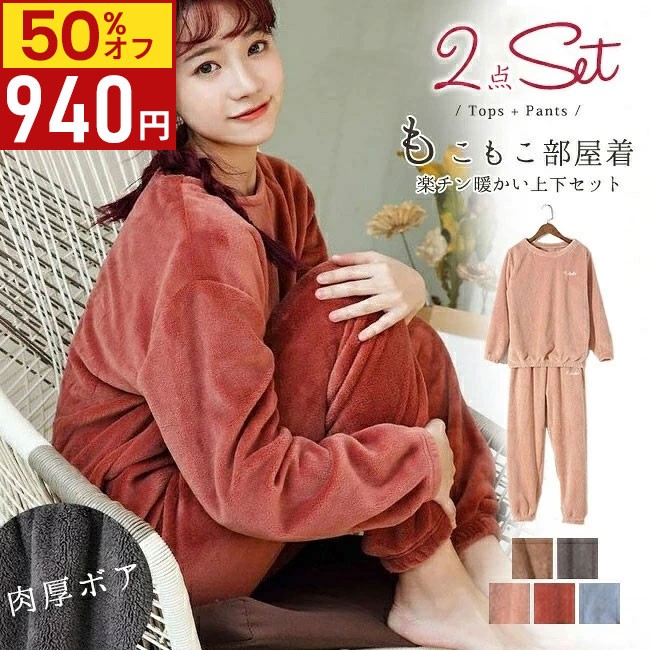 \899円/点 59%OFF!クーポン!よりどり3点で/【秋冬新作】彼女に着てほしいルームウェア第1位!! ふわもこ 超保温モテルームウェア 裏起毛 ふわもこ ルームウェア 超保温ふんわり肌触りスウェットルームウェア