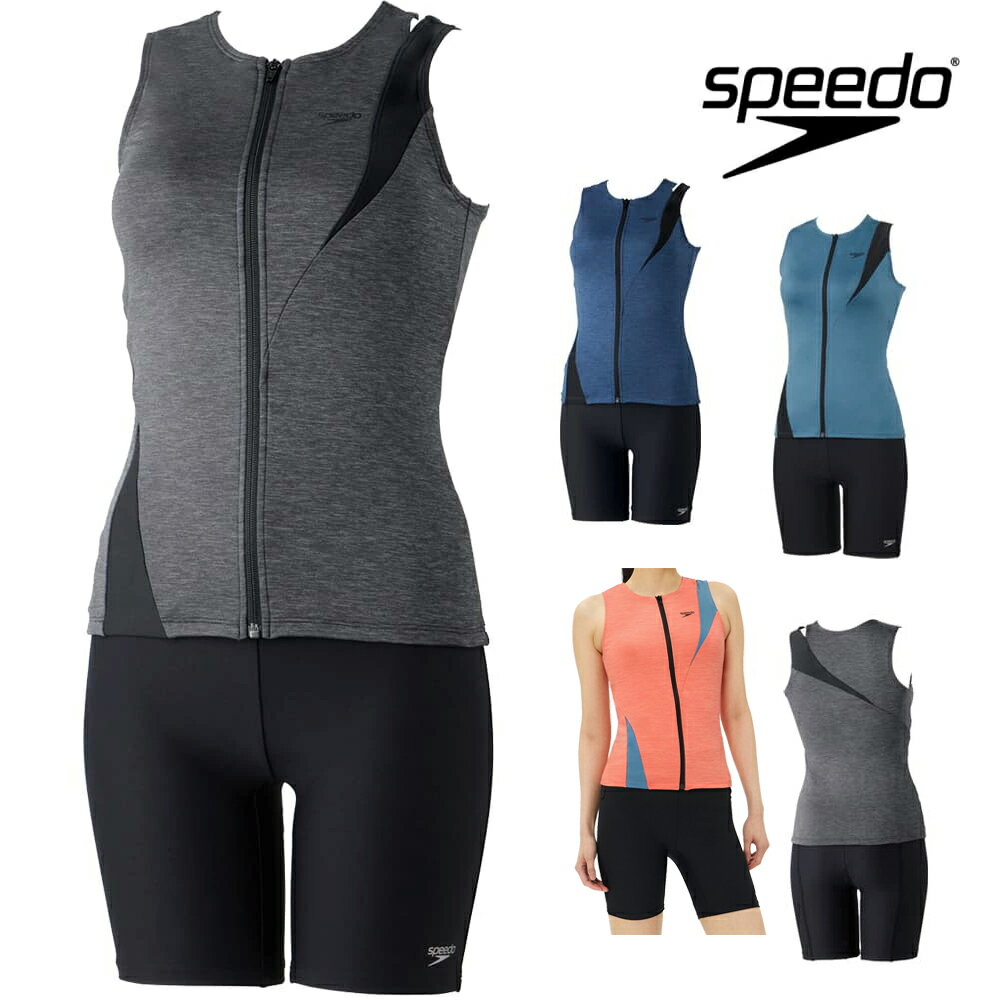 【全品ポイント3倍+最大2000円OFFクーポン】スピード speedo レディース フィットネス水着 セパレーツ フロントジップ スナップ付 差し込みカップ SFW32410 XB