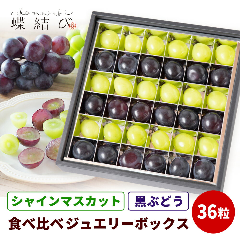 【期間限定★P5倍】シャインマスカット と黒ぶどう の ジュエリーボックス 36粒 【 送料無料 】食べくらべ 2種 ぶどう 葡萄 マスカット 黒ぶどう 食べ比べ 果物 フルーツ ギフト 高級フルーツ 誕生日 お祝い お礼 熨斗 メッセージカード 蝶結び