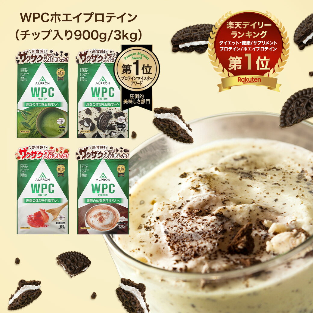 【10%OFFクーポン配布中】WPC ホエイプロテイン チップ入り 900g 3kg クッキー&クリーム 杏仁豆腐 ミルク ココア 抹茶 国内製造 ホエイ プロテイン ダイエット 美容 人気 おすすめ 筋トレ たんぱく質 美肌 ALPRON