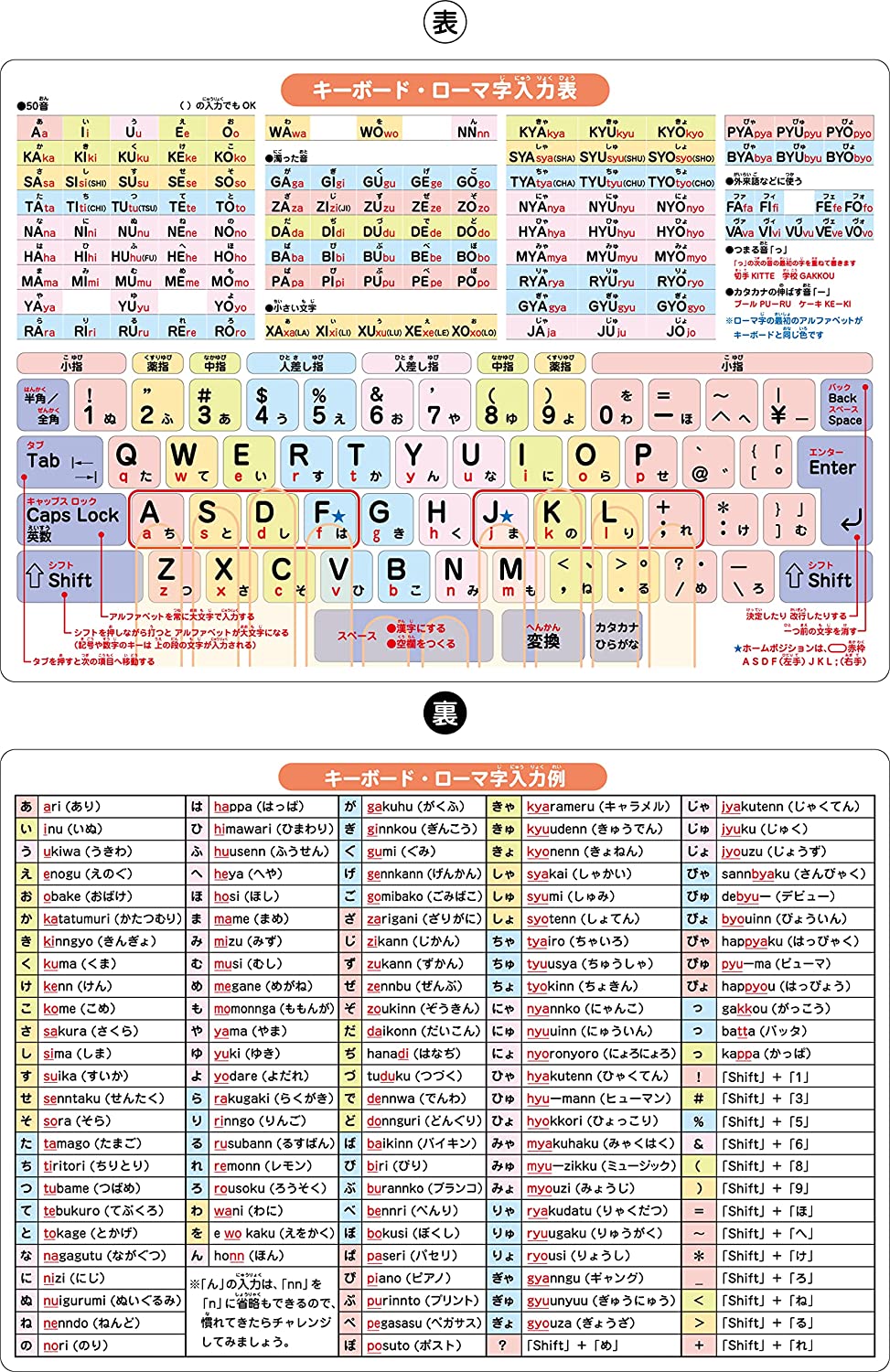 【ローマ字表 下敷き】ノートライフ A4(30×21cm) リバーシブル くすみカラー タイピング練習 キーボード配列&ローマ字入力表 ひらがな・ふりがな付 小学生 学習 入学準備 受験 勉強