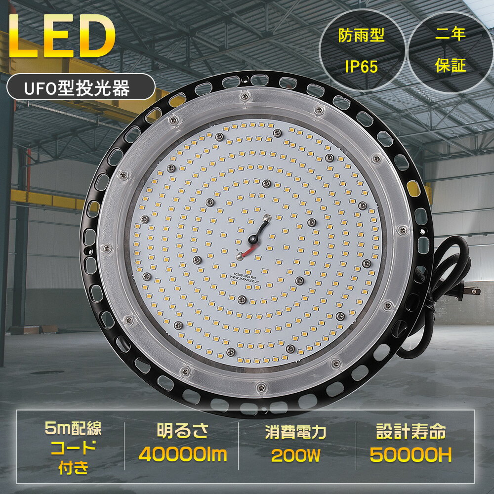 UFO型LED高天井灯 LED高天井照明 吊り下げ型 投光器 消費電力200w 全光束40000lm ダウンライト 2000W水銀灯相当 防雨型LED投光器 2000形水銀ランプ相当 工場用LEDライト 水銀灯からLEDへ交換 LEDワークライト IP65 防塵防水 屋内屋外兼用 円盤型 LED投光器 投光器 丸型 工場