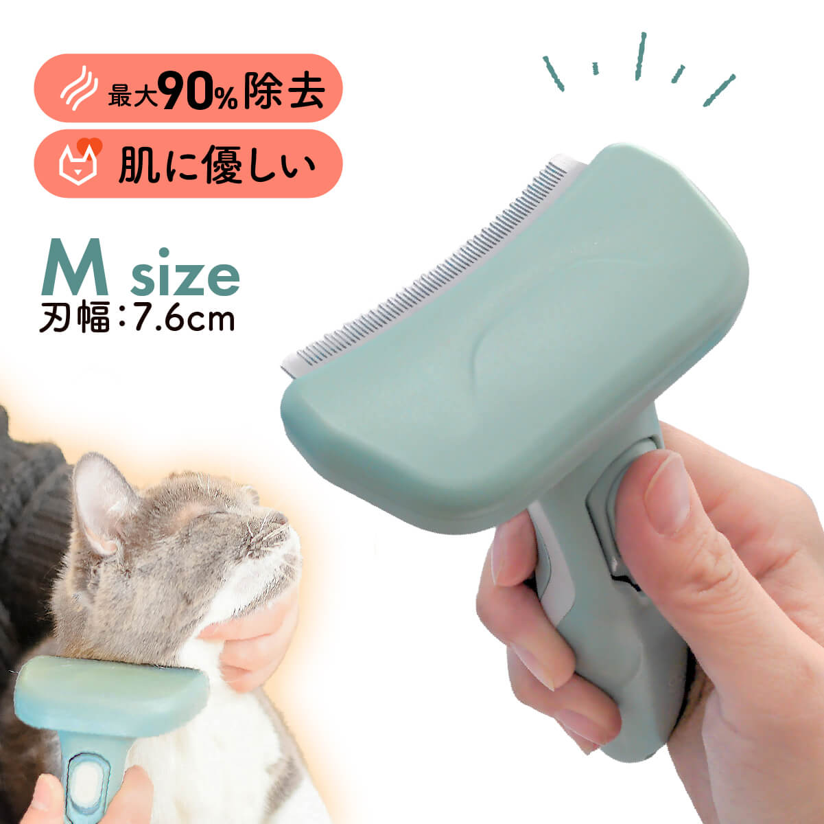 猫 ブラシ 犬 ペットブラシ 長毛 短毛 抜け毛取り 抜け毛除去 毛玉ケア 毛玉予防 猫の毛 カーブ ブラッシング アンダーコート グルーミング フィット おしゃれ かわいい 肌に優しい 中型犬 大型犬 ワンプッシュ式 洗える Mサイズ 送料無料(沖縄除く)