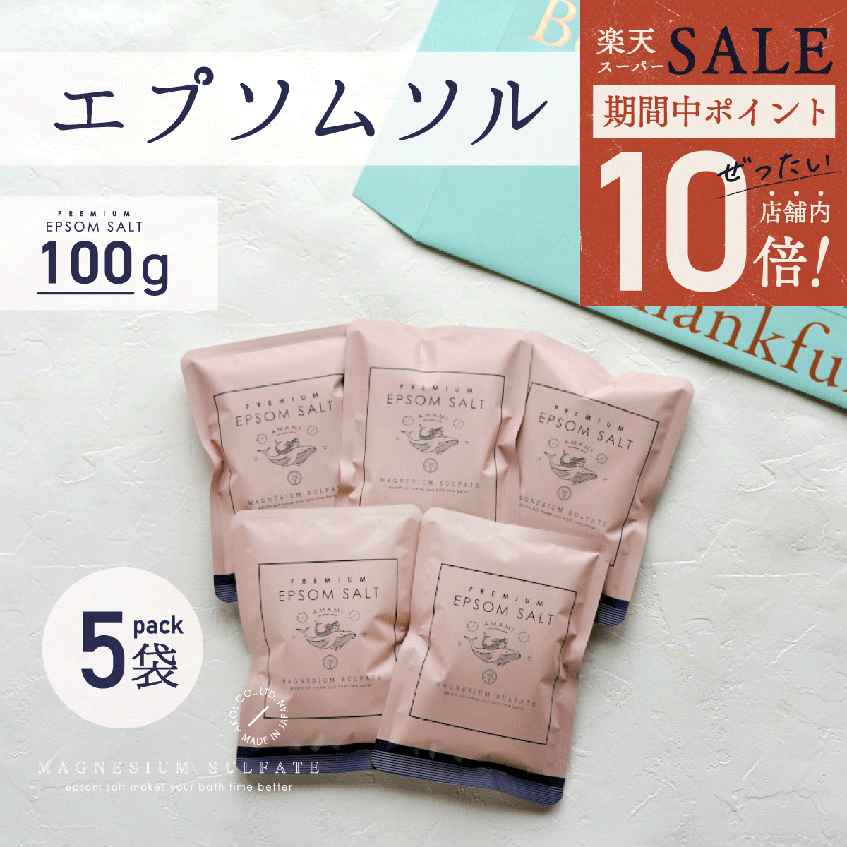 \ スーパーセールP10倍 / エプソムソルト 100g 5袋 500g ラッピング付き プレミアム 超微粉 プチギフト 国産 送料無料 マグネシウム 硫酸マグネシウム バスソルト 入浴剤 保湿 高級 お風呂 浴用化粧品 バスタイム 半身浴 エステ 乾燥 潤い マグネシウム風呂