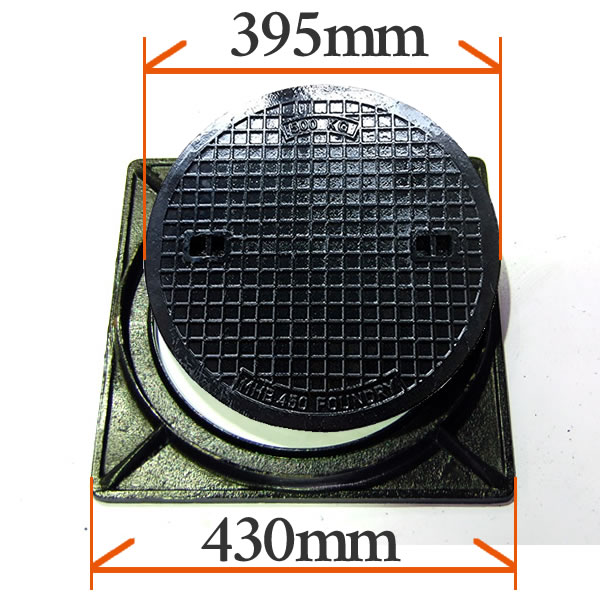 鋳鉄製 マンホール フタ径395mm フタ&枠セット 2t荷重 穴径350mm MK-1-350 セット (枠付き) 乗用車用 (普及型)マンホール 浄化槽 マンホール蓋
