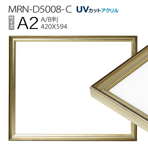額縁 MRN-D5008-C A2(420×594mm) ポスターフレーム AB版用紙サイズ シャンパンゴールド(UVカットアクリル) 木製