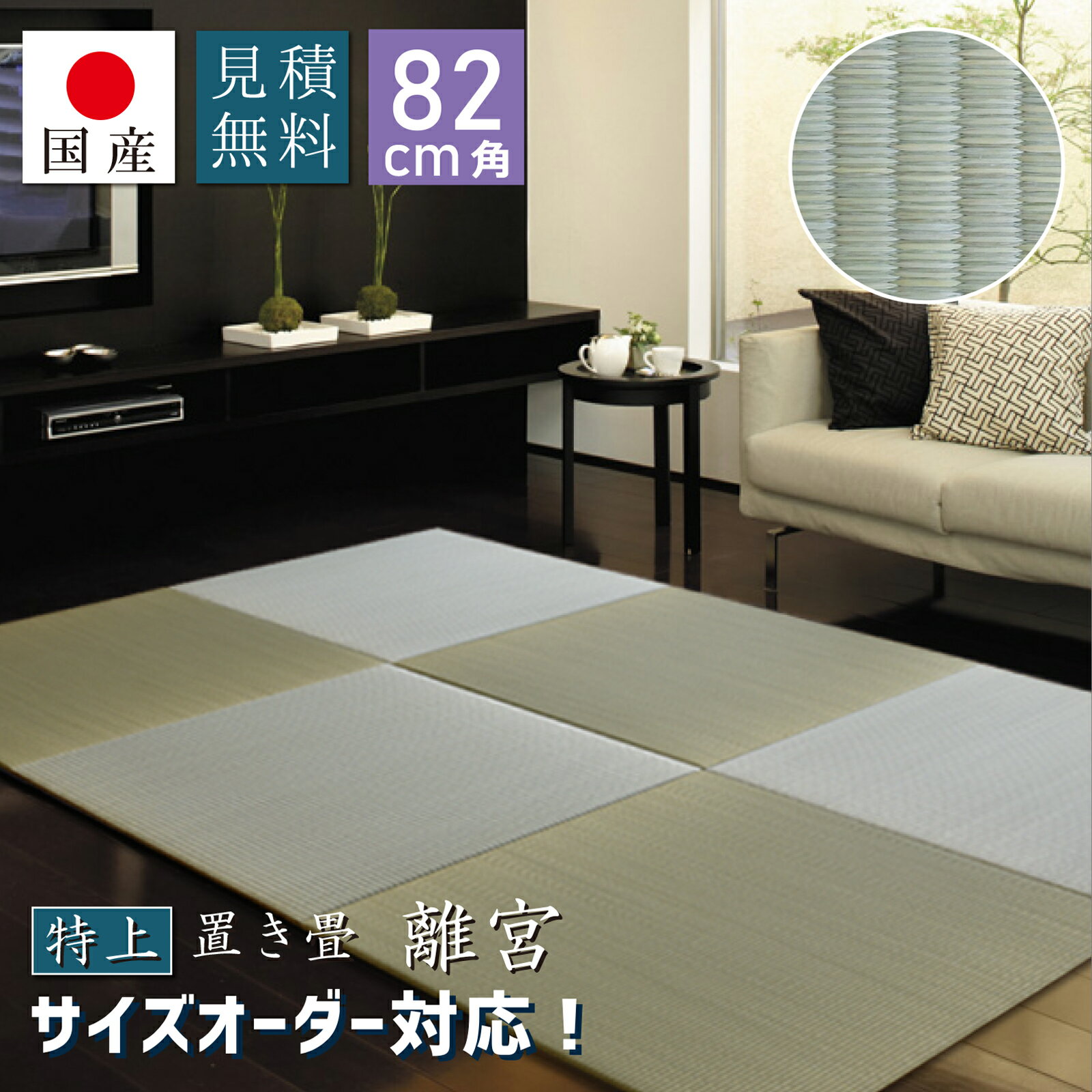 4日〜要エントリーP5倍&100円クーポン【国産】特上 置き畳 ユニット畳 オーダー加工¥750 見積無料 畳 琉球畳 い草 約82×82cm×厚み1.6cm 縁なし畳 日本製 天然素材 フローリング【離宮1.6cm厚】
