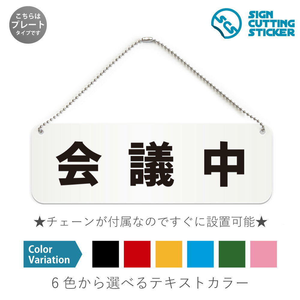 会議中 横長 プレート 看板 / ボールチェーン・スタンド付き (アクリル板 プラ・標識 サイン・防水 耐水 屋外)(防止 抑止 案内)室内表札 ドアサイン 来客中 使用中 仕事 MEETING 公共施設 オフィス ドア 扉 ドアノブ 取手 壁掛け 壁 入口 窓 フック