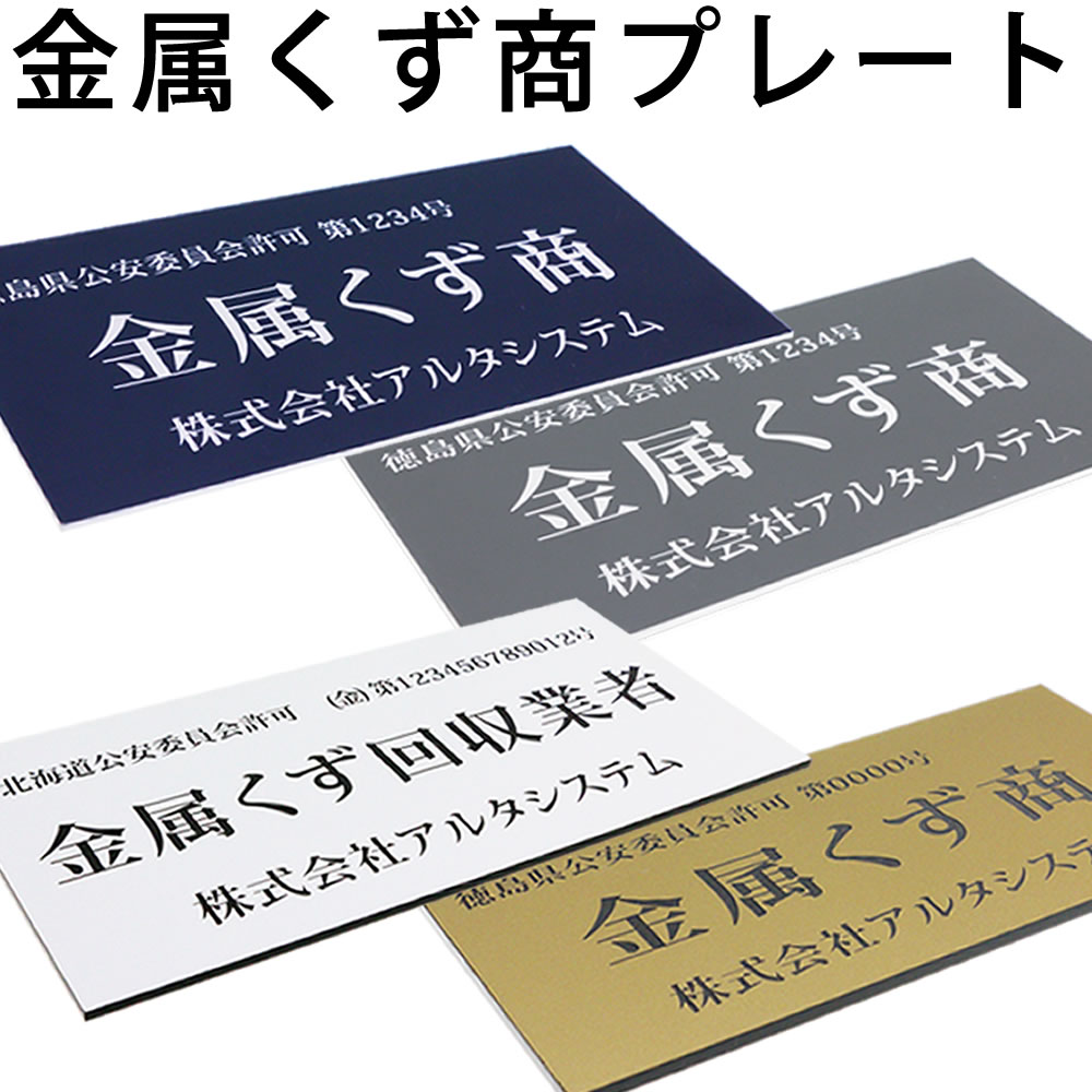 \本日P2倍/金属くず商プレート スタンド 壁掛け穴 両面テープ マグネット/金属くず回収業 金属資源商 金属商 金属くず取扱業 金属くず類回収業者許可標識 レーザー彫刻 壁掛け 磁石 警察 公安委員会 オーダーメイド 平日13時まで即日発送 楽天スーパーセール