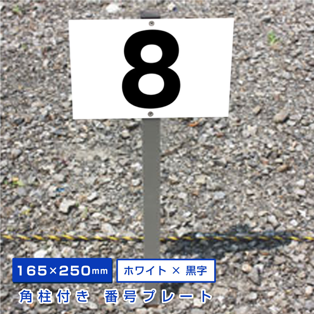 【期間限定10%OFFクーポン】◎駐車場アルミ角柱付番号プレート 支柱付駐車場番号 ■プレートサイズ:H165×W250ミリ/砂利 土 更地 駐車場番号看板 埋め込み 公園 おすすめ マンション 管理地 賃貸 ハイツ 賃マン 店舗 棒付き 数字 選べる
