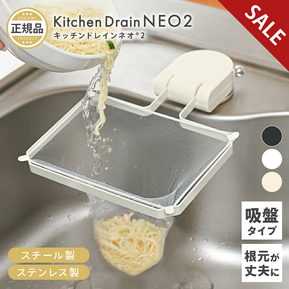 【SALE】 \ Newステンレス仕様 / キッチンドレインネオ 2 三角コーナーいらず 浮かせる 本体 三角コーナー 折り畳み 生ゴミ キッチンドレイン 水切りネット 50枚付き ネット ホルダー シンク ラック 台所 キッチン いらず シンク おしゃれ 水切りラック