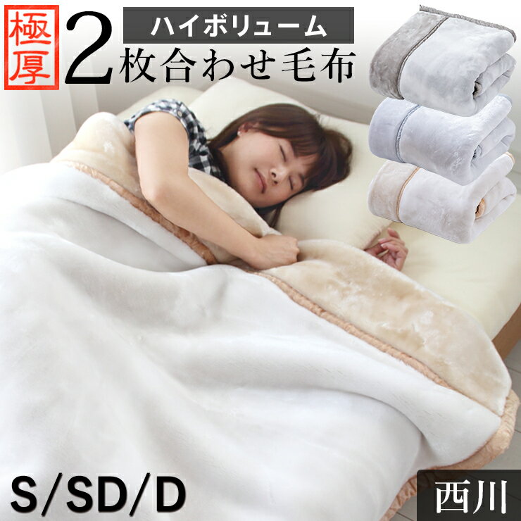 【期間限定50%OFF&エントリーでP10倍】西川 毛布 2枚合わせ毛布 ハイボリューム 極厚タイプ 厚手 マイヤー合わせ毛布 あったか 暖かい オーロラ 衿付き ブランケット 2枚合せ 京都西川 ボリュームタイプ もうふ
