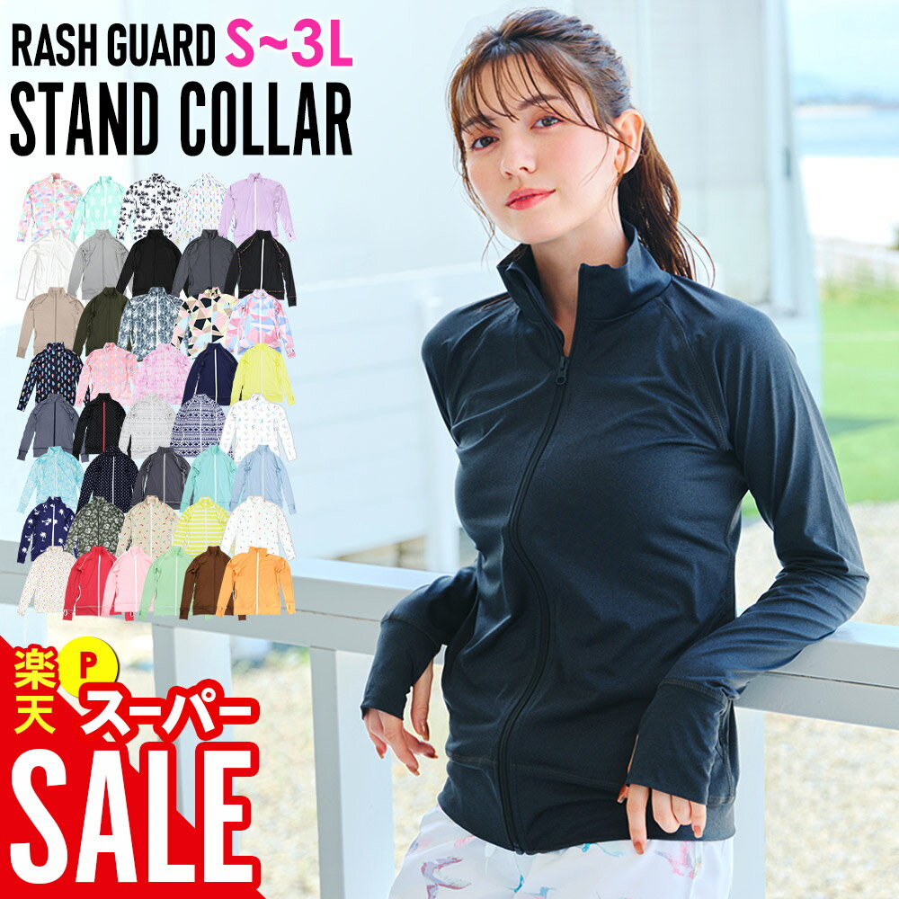 【クーポン配布中】【アウトレット価格】接触冷感 ラッシュガード レディース ジップアップ スタンドカラー UPF50+ S〜3L UVカット率98% FELLOW フードなし スタンド衿 水着 長袖 UVカット 紫外線対策 25T-RZ2