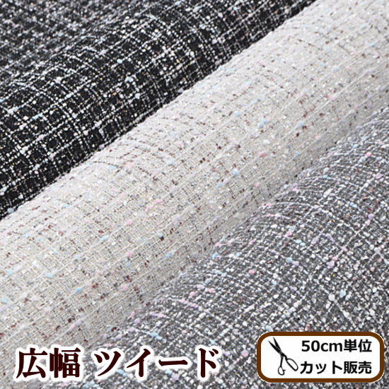 【半額セール】 ツイード 生地 150cm幅 ラメ入り 全3色 ■ ツイード生地 ツィード 布 W幅 キラキラ ジャケット コート スーツ ワンピース バッグ インテリア カーテン ハンドメイド 手作り 手芸 djh23 ■