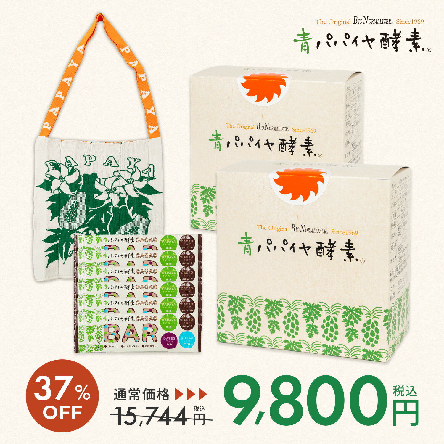 ★37%OFF+ポイント10倍★ カカオバーセット 青パパイヤ酵素 公式 60包 粉末 バイオノーマライザー KNT365 ニットバッグ Knitty 栄養バー カカオバー 青パパイヤ こうそ 非加熱 活きた酵素 プレゼント ギフト 30代 40代 50代 60代