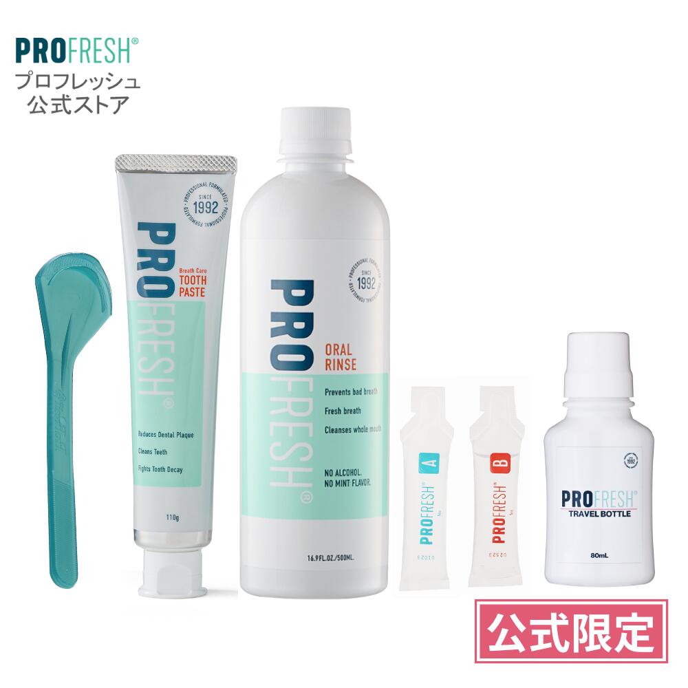 【公式】プロフレッシュ 口臭ケア マウスウォッシュ 500ml 歯科医院採用 舌苔除去 ノンアルコール 低刺激 無香料 約65回分 歯磨き粉 タングスクレーパー 携帯ボトル コンプリートセット 口臭対策 口臭予防 エチケット PROFRESH アルファネット