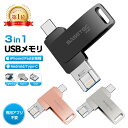 【P5+最大15%OFF限定クーポン】【国産IC搭載(東芝9T25)】USBメモリ 2in1 USB3.0 USB-C lightningアダプタ セット iphone 64GB/128GB/256GB/512GB/1TB Windows アンドロイド 容量不足 外付けメモリ 360°回転 データ転送 バックアップ 送料無料